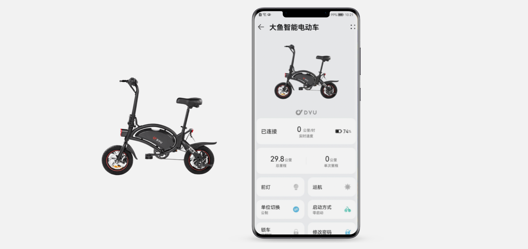 D2C 作为大鱼智行与 HarmonyOS Connect 生态的首次碰撞,开鸿智联在其中提供完整的接入方案,同时还给产品赋能多种智能化体验。如碰一碰极简交互,D2C 采用 NFC 碰一碰的方式实现极简交互,抛开传统智能设备繁杂的连接方式,一开一碰即可完成连接,随心操控,巡航功能、速度&电量显示、里程记录等功能让用户直观的感受到智能设备带来的便利。设备安全锁、行驶速度限制、防误触等功能更好的给用户提供了安全保障。凭借其突出的产品品质和用户体验,帮助客户实现口碑市场双丰收。